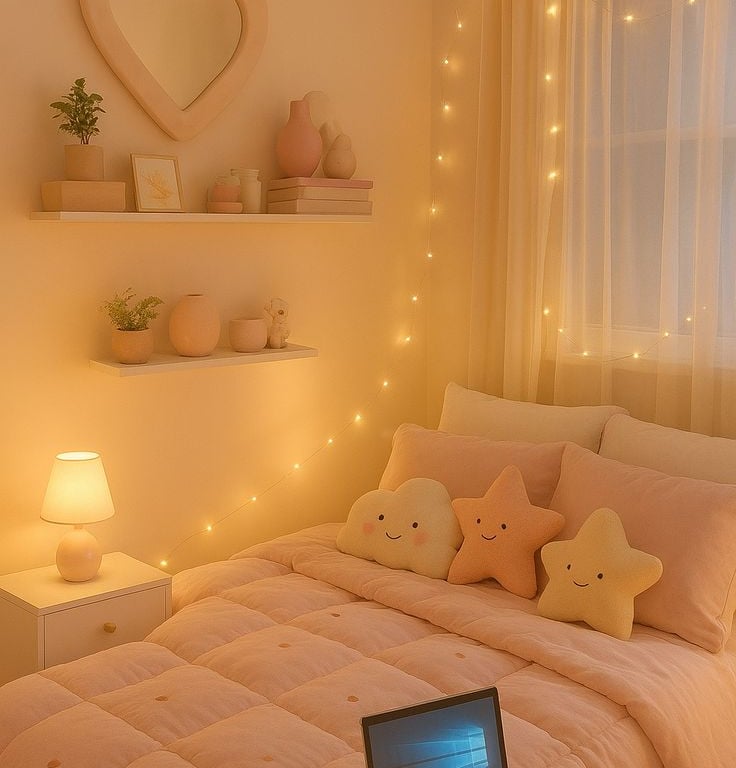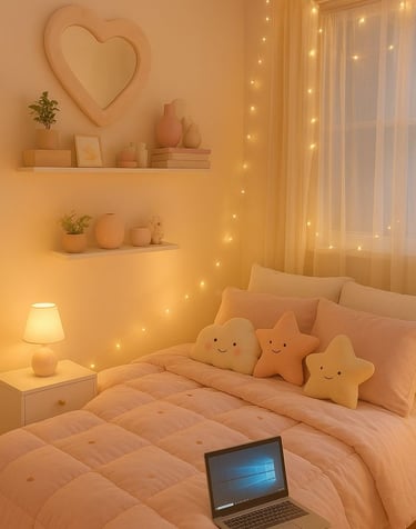 “Winter gloom? Not in your house cause we’re turning cozy vibes, golden light, and pastel magic into a full-on happy home glow-up 💖☕”