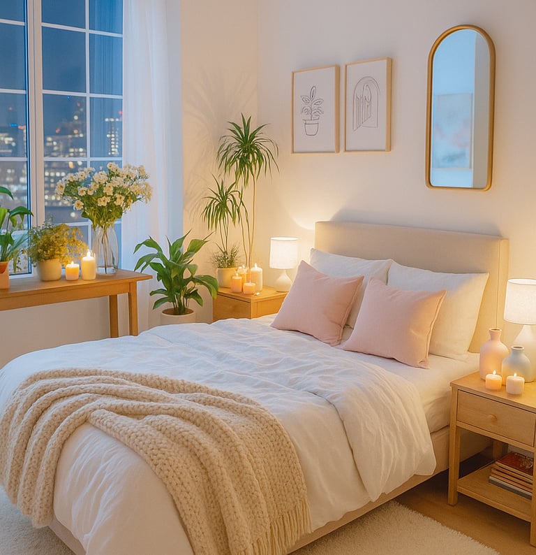 💬 Color combo inspo: beige + blush + cream = cozy, glowy, serotonin-inducing home.